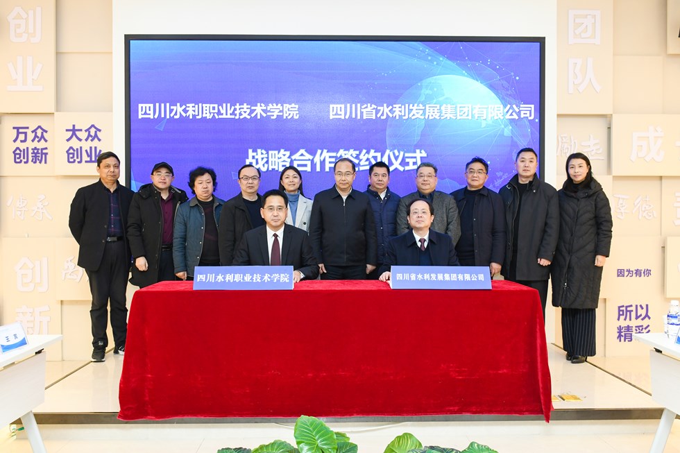 12月29日,集團在崇州與四川水利職業技術學院簽署戰略合作框架協議。水利廳黨組書記、廳長胡云出席簽約儀式并講話。