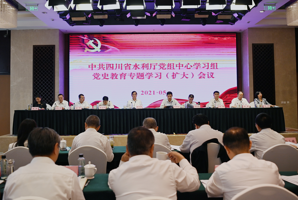 為深入推進(jìn)全省水利系統(tǒng)黨史學(xué)習(xí)教育活動(dòng),承前啟后、繼往開(kāi)來(lái),切實(shí)把水利廳黨組前期加強(qiáng)黨史理論學(xué)習(xí)教育,深入調(diào)查研究和廣泛聽(tīng)取各方意見(jiàn)建議的成果轉(zhuǎn)化為助推四川水利高質(zhì)量發(fā)展的不懈動(dòng)力。5月13日,水利廳黨組中心學(xué)習(xí)組黨史教育專題學(xué)習(xí)(擴(kuò)大)會(huì)在成都召開(kāi)。會(huì)議在認(rèn)真聽(tīng)取黨史教育專家劉偉教授的黨史教育輔導(dǎo)課后,深入分析研判新時(shí)期新階段四川水利改革發(fā)展面臨的新形勢(shì)新機(jī)遇和新挑戰(zhàn),提出了新時(shí)代實(shí)現(xiàn)四川水利高質(zhì)量發(fā)展的“3226”總體工作思路。水利廳黨組書(shū)記、廳長(zhǎng)郭亨孝主持大會(huì)并作主題報(bào)告和總結(jié)講話。廳黨組成員、副廳長(zhǎng)張強(qiáng)言解讀《四川省“十四五”水安全保障規(guī)劃報(bào)告(匯報(bào)稿)》。李啟兵、李勇藺、王華、劉輝、譚小平、梁軍、趙斌、權(quán)燕等廳黨組中心學(xué)習(xí)組成員及在職廳級(jí)干部出席會(huì)議。