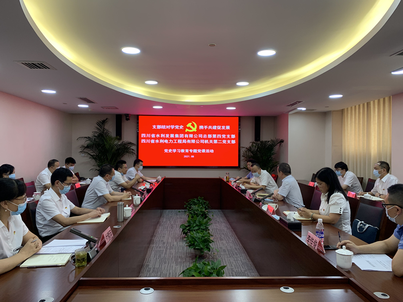 2021年8月4日,省水發(fā)集團(tuán)總部第四黨支部與工程局公司機(jī)關(guān)第二黨支部在工程局公司成都總部會(huì)議室聯(lián)合開展“支部結(jié)對(duì)學(xué)黨史.攜手共建促發(fā)展”黨史學(xué)習(xí)教育專題黨課活動(dòng)。集團(tuán)黨委委員、工程局公司黨委書記、董事長代勇,集團(tuán)黨委委員、總工程師黃永沾,集團(tuán)副總經(jīng)理隆文非以普通黨員身份參加所在支部組織的活動(dòng)。