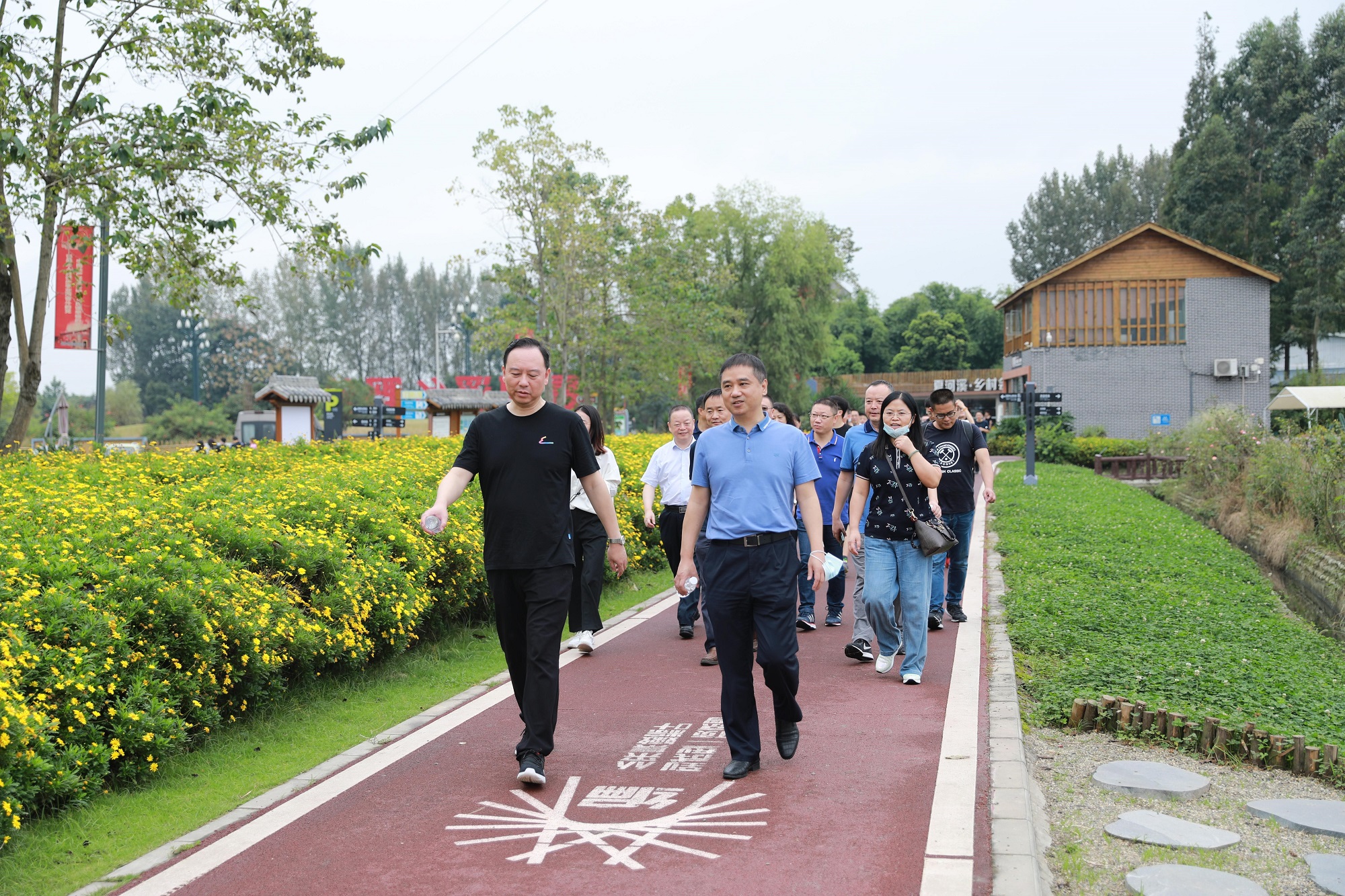 9月24日上午,省水發(fā)集團領(lǐng)導(dǎo)班子及總部全體干部職工如約而至,參加集團工會舉辦的“喜迎國慶健步走”活動。走進新都區(qū)夏河溪鄉(xiāng)野公園,放眼望去,目光所及之處盡是一望無際的青綠,其間還錯落地點綴著幾座田園小居,一派生機盎然,悠然閑適的景象。