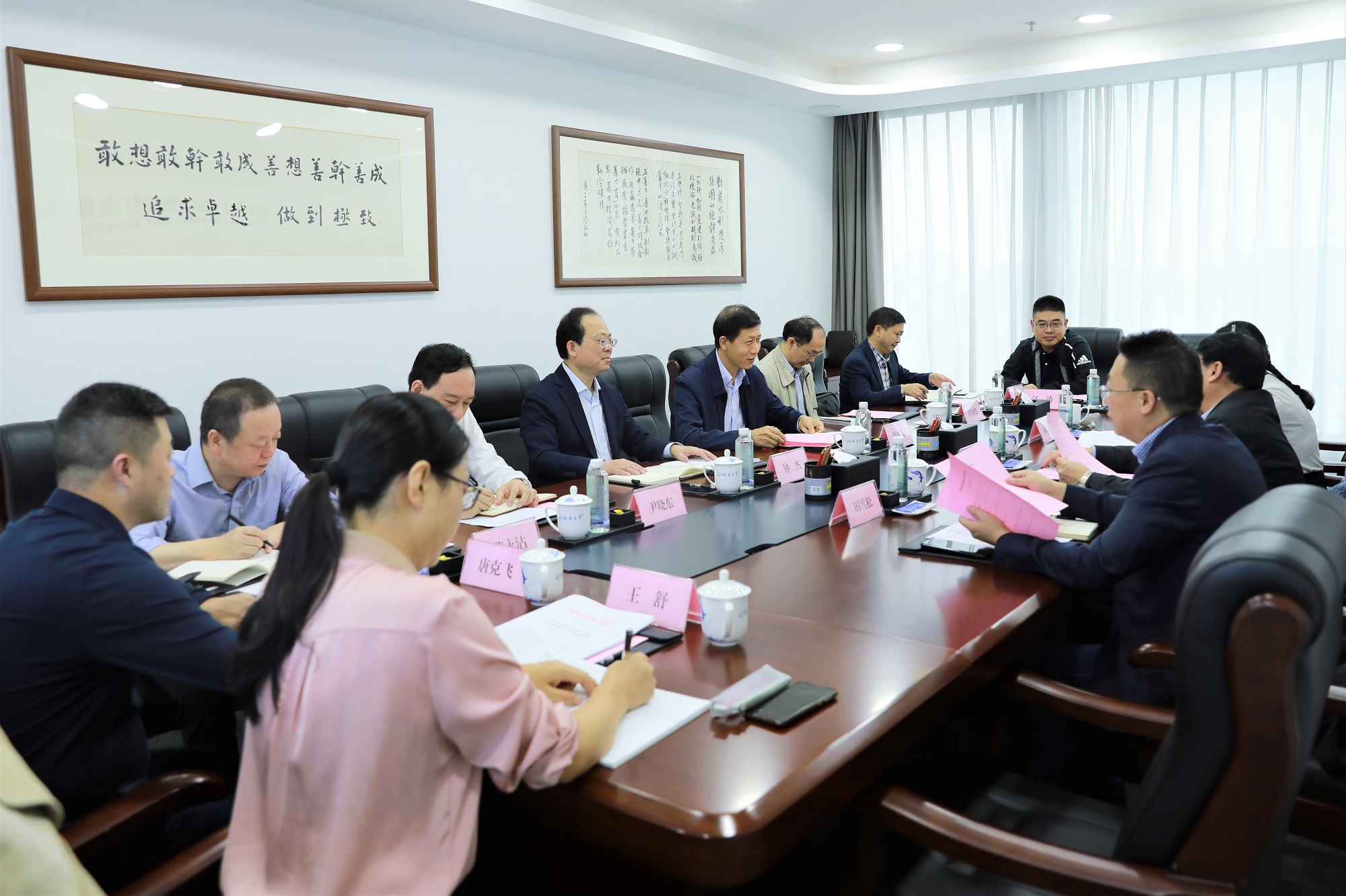 集團(tuán)黨委書(shū)記、董事長(zhǎng)鐘杰匯報(bào)了集團(tuán)組建以來(lái)工作開(kāi)展情況及關(guān)于大型水利工程體制機(jī)制創(chuàng)新工作進(jìn)展情況。鄧長(zhǎng)金副主任對(duì)集團(tuán)各項(xiàng)工作給予充分肯定,認(rèn)為集團(tuán)各項(xiàng)工作推進(jìn)順利、思路清晰、開(kāi)局良好,希望集團(tuán)在水利廳領(lǐng)導(dǎo)下作為水利投融建省級(jí)平臺(tái)企業(yè)要重點(diǎn)做好以下幾項(xiàng)工作:一是繼續(xù)著力在創(chuàng)新上做文章,以新面貌積極探索重大水利工程體制機(jī)制,積極推進(jìn)高效節(jié)水型社會(huì)建設(shè);二是在重大項(xiàng)目上做到高起點(diǎn)規(guī)劃、系統(tǒng)性思維、超前意識(shí),充分考慮環(huán)境、投資因素等,把握時(shí)間節(jié)點(diǎn),積極推進(jìn),引領(lǐng)帶動(dòng)節(jié)水型社會(huì)建設(shè);三是牢牢把握鄉(xiāng)村振興機(jī)遇,積極參與鄉(xiāng)村水務(wù)建設(shè),深入研究與地方政府的合作機(jī)制,全力推進(jìn)四川水利建設(shè)。