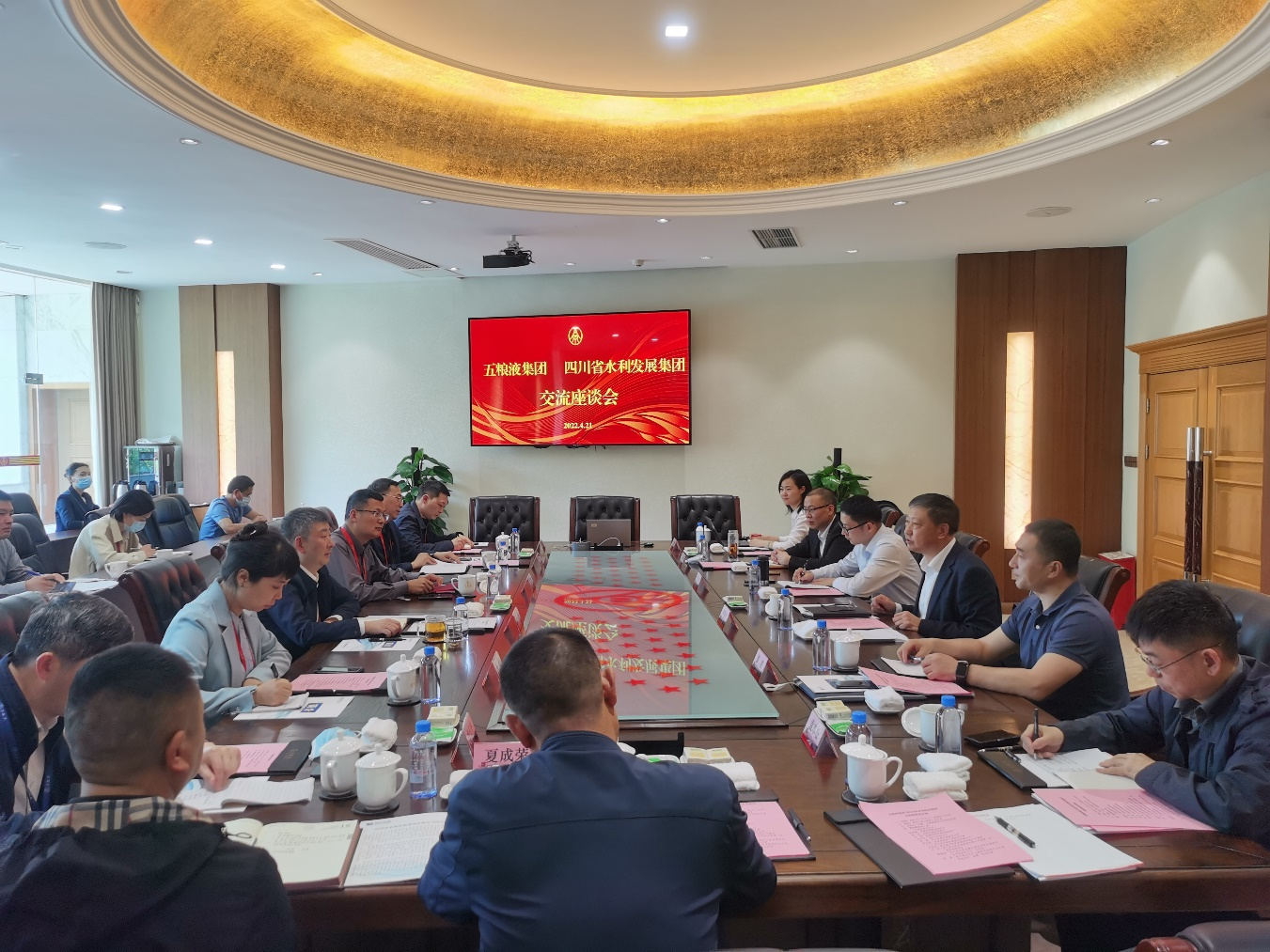 為加強集團自身造血功能,2022年4月21日,集團董事羅國書帶隊赴五糧液集團洽談合作事項,五糧液集團副總經理李健參加會談。