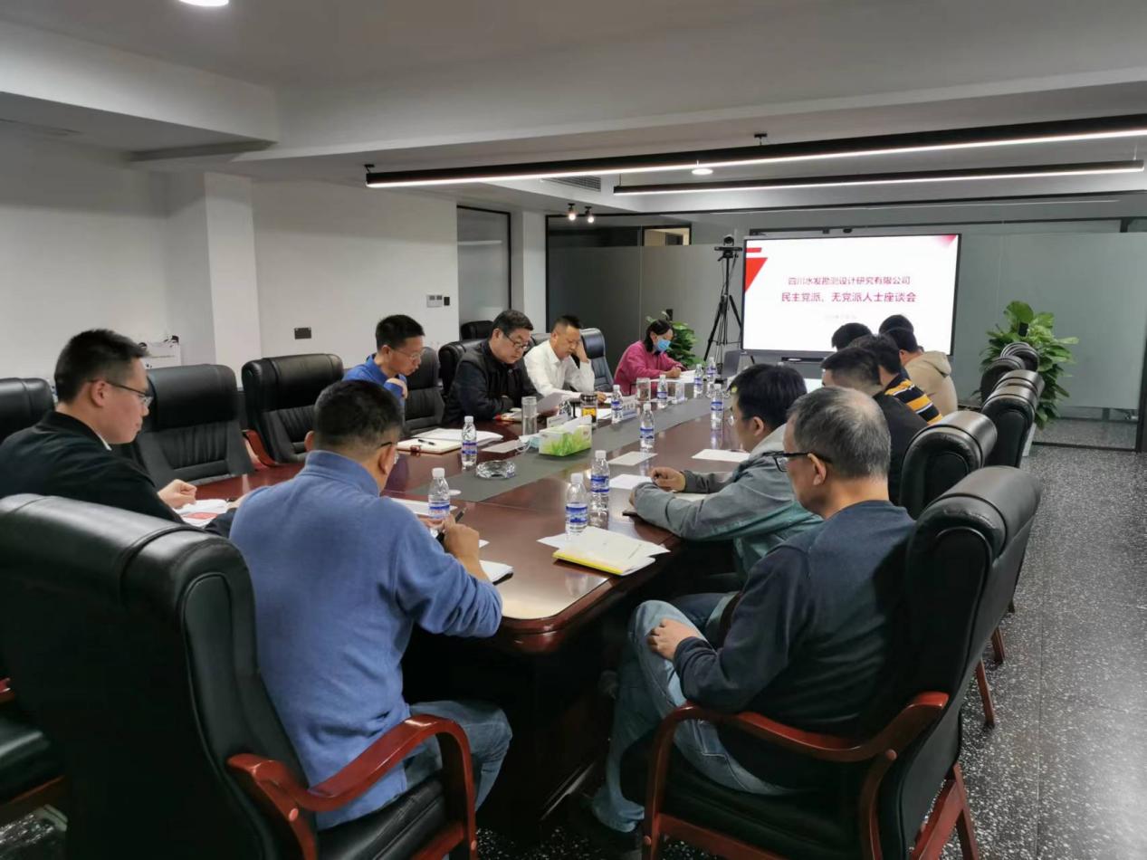 11月1日下午,四川水發設計公司召開了民主黨派、無黨派人士座談會。設計公司黨委副書記、董事、總經理周武平參加會議并講話,會議由黨委專職副書記、董事王君主持。黨委委員、紀委書記姚磊參會,農工、民革、九三學社人士及相關部門負責人共14人參加了會議。