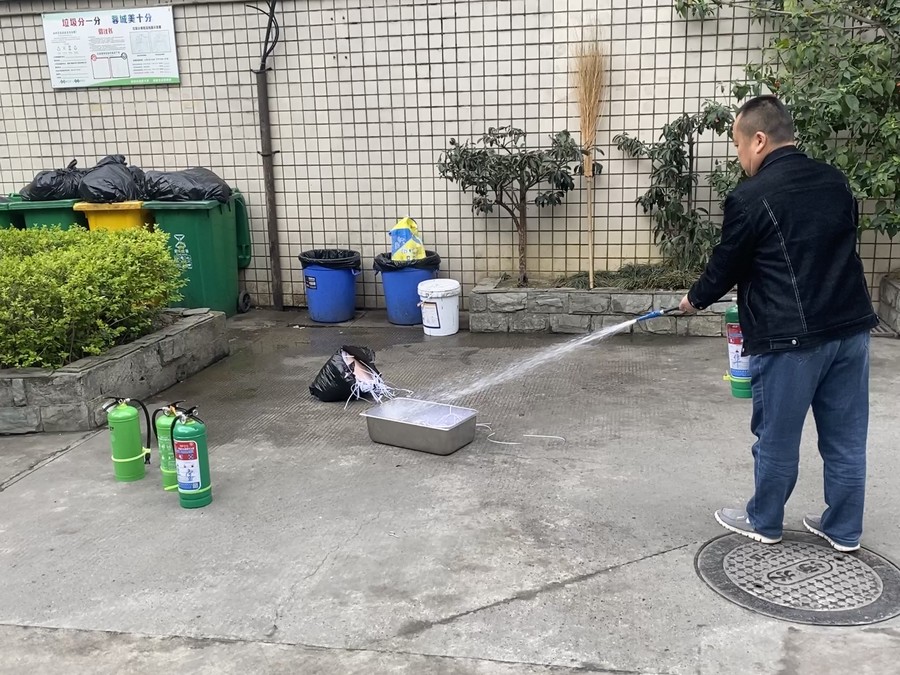 演練開始后,消防安全管理人員認真指導員工正確使用手提滅火器進行滅火演練。面對火情,員工們表現(xiàn)沉著冷靜,正確地使用滅火器將燃起的明火迅速撲滅。