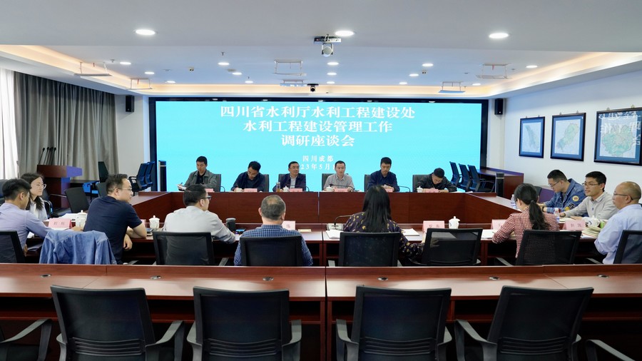 5月10日,四川省水利廳財務處處長徐波帶領工程建設處副處長嚴昭昭、黃振國等一行蒞臨集團調研水利工程建設管理工作,集團副總經理隆文非參加調研座談會。