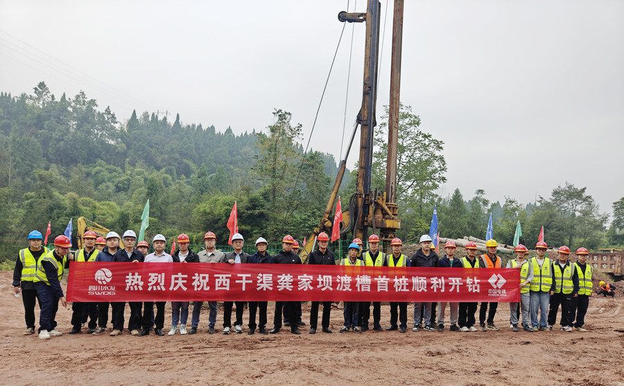 龔家壩渡槽位于西干渠第二流量段,設計流量17.3立方米/秒,設計水深2.73米,設計縱坡1/2000,為簡支梁式U型渡槽。建筑物組成包括:進口連接段、槽身、支承結構、出口連接段。為保證項目年度產值目標,工程建設團隊群策群力,及時協調各方資源,對施工方案反復進行研究優化,組織技術交底。對渡槽上部槽身結構和下部支承結構進行調整,以降低施工安全風險,縮短施工工期,為首根樁機的順利開鉆奠定了堅實基礎。下一步,項目部將繼續按照整體工期目標,加強施工隊伍和管理人員協調聯動、緊密配合,齊心協力打好“組合拳”,全力以赴確保工程建設高效有序推進。