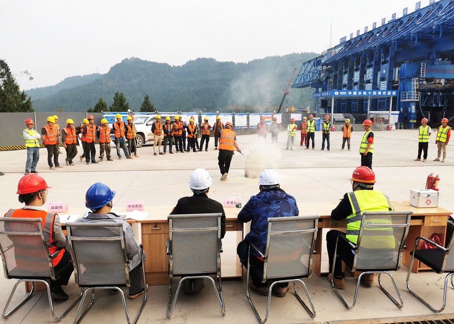 本次演練在唐家溝渡槽造槽機始發(fā)平臺進行,現(xiàn)場設置隧洞內(nèi)發(fā)生火災應急疏散,講解煙霧中毒施救要點及注意事項,利用假人實操心肺復蘇術現(xiàn)場急救以及如何使用消防器材撲滅火災等三個場景。通過演練,作業(yè)人員掌握了隧洞發(fā)生火災后的正確逃生方式、了解掌握心肺復蘇術現(xiàn)場急救的方法,學會滅火器材選取和正確使用。活動以點帶面,提升了參演人員檢查消除火災隱患、組織撲救火災、人員疏散逃生和自救互救能力。下一步,項目部將以消防安全月為契機,緊緊圍繞活動主題,持續(xù)深入開展專題培訓、警示教育、專項檢查等活動,構建群防群治安全網(wǎng),真正統(tǒng)籌好生產(chǎn)和安全,為加快助推亭子口灌區(qū)一期工程建設保駕護航。