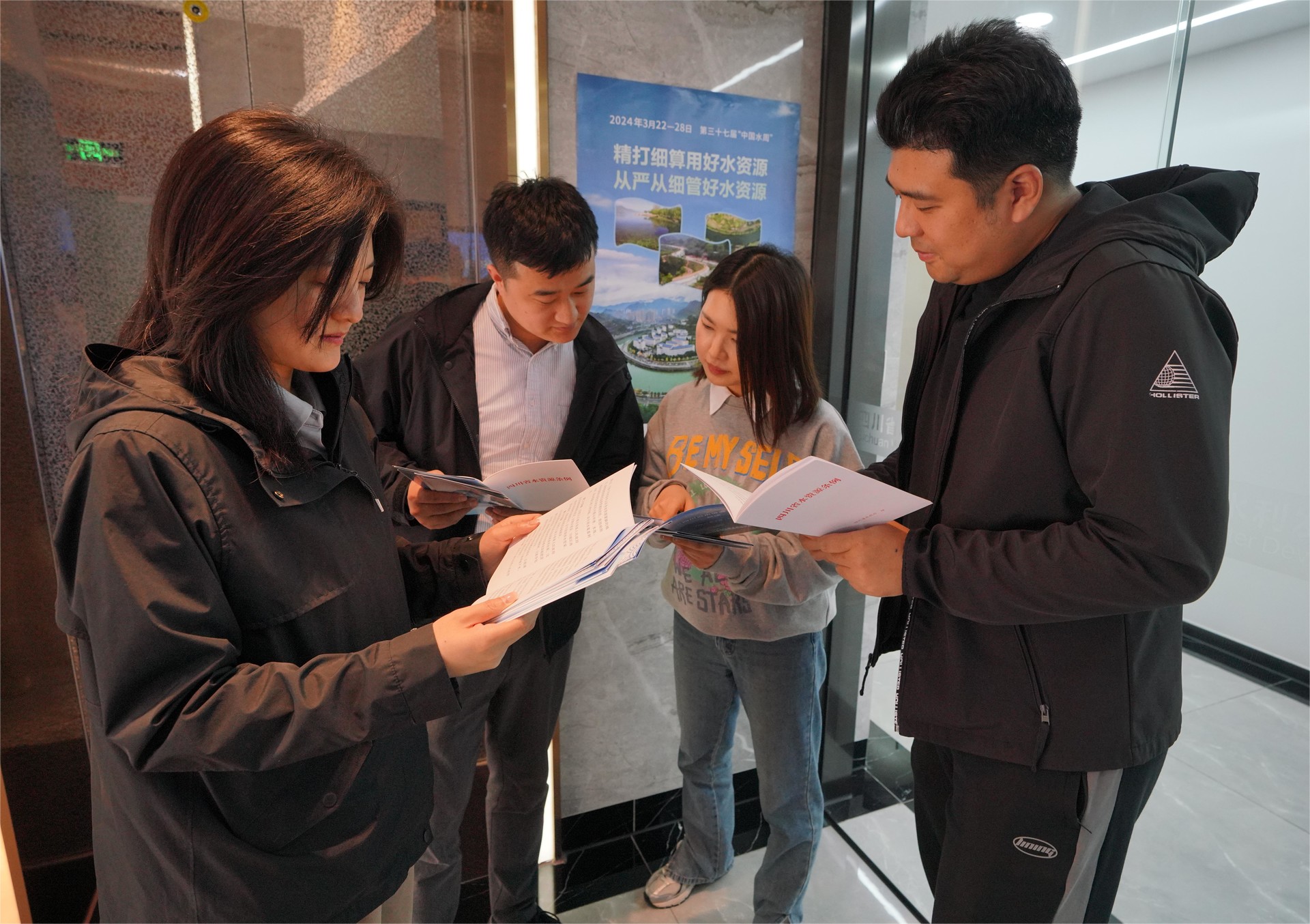 在集團總部,宣傳機連續播放中央電視臺紀錄片《治水記》,讓大家直觀感受在習近平總書記關于治水思想的指引下,中國水利建設取得的顯著成就,見證治水興國的戰略思想為糧食安全、經濟安全、社會安全、生態安全和國家安全提供的有力保障。同時,統籌下屬企業全面啟動世界水日、中國水周宣傳活動,傳遞節水理念,充分利用現有宣傳平臺,分發張貼宣傳海報和制作科普小視頻,展現集團在建工程對有效保護、利用水資源的工作成效。