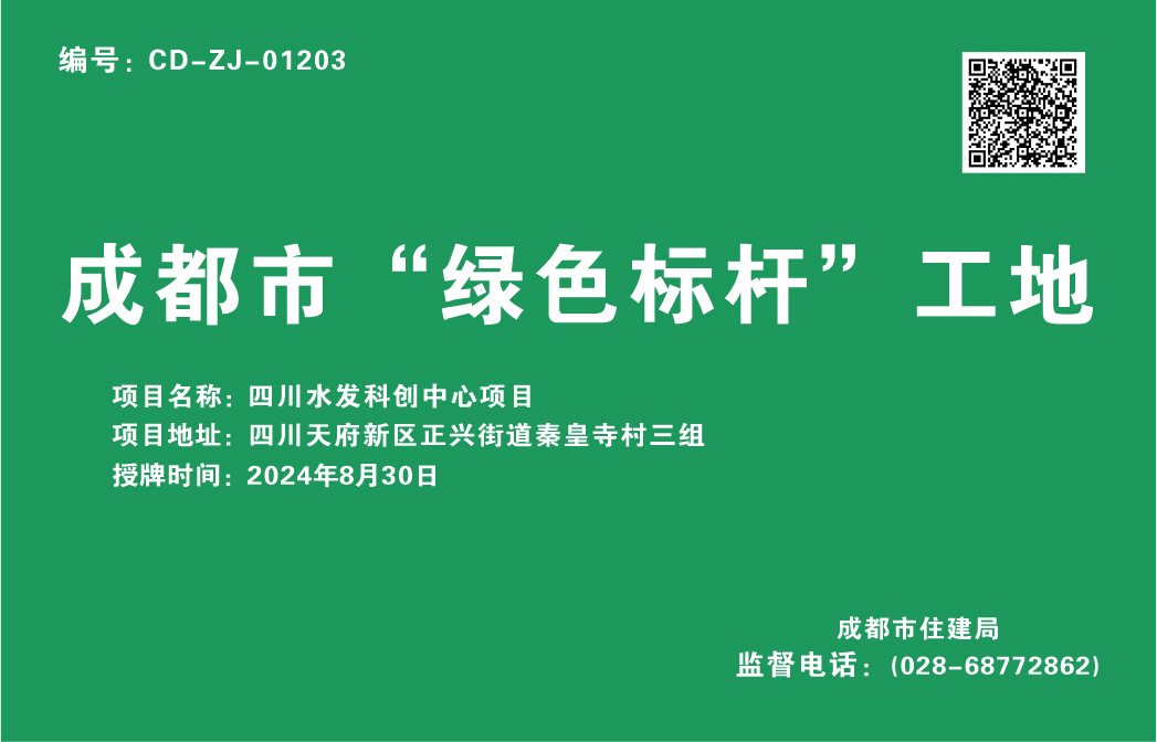 近日,四川水發(fā)科創(chuàng)中心項(xiàng)目正式取得由成都市住建局頒發(fā)的成都市“綠色標(biāo)桿”工地稱號,這是該項(xiàng)目獲批成都市2024年度重點(diǎn)項(xiàng)目之后榮獲的又一殊榮。