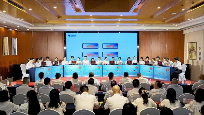 決賽現場,全體干部職工在雄壯豪邁的歌聲中齊唱《歌唱祖國》,隨著公司董事、總經理羅雪宣布開賽,決賽正式開啟激烈角逐。競賽圍繞黨建宣傳、群團建設、決策治理、戰略管控、安全生產、職能管理和業務運行等方面,在“必答題--初露鋒芒”“搶答題--爭分奪秒”“風險題--共克險關”等環節,各組選手配合默契、反應迅速,以進取的精神、務實的作風精準判斷、踴躍答題;現場觀眾積極參加現場互動競答,充分展示了扎實的理論功底、豐富的知識儲備和良好的精神風貌。