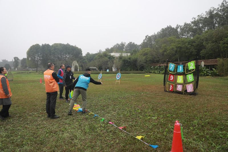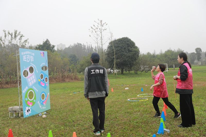 本次活動巧妙地融合了豐富的健康知識問答和形式多樣的趣味運動。活動首先通過游戲互動將參與人員分成多個小組,然后按活動規(guī)則對各小組參加的活動進行積分排名。在“慧選健康”環(huán)節(jié),參與者對健康知識作選擇并在規(guī)定時間奔跑至劃定的A或B區(qū)域,選擇錯誤被暫時淘汰;在趣味運動環(huán)節(jié),上一活動環(huán)節(jié)被淘汰者通過飛盤九宮格、正中靶心、踢毽擊鑼、呼啦圈、扔沙包等趣味運動“復活”后,再次參與“慧選健康”活動。